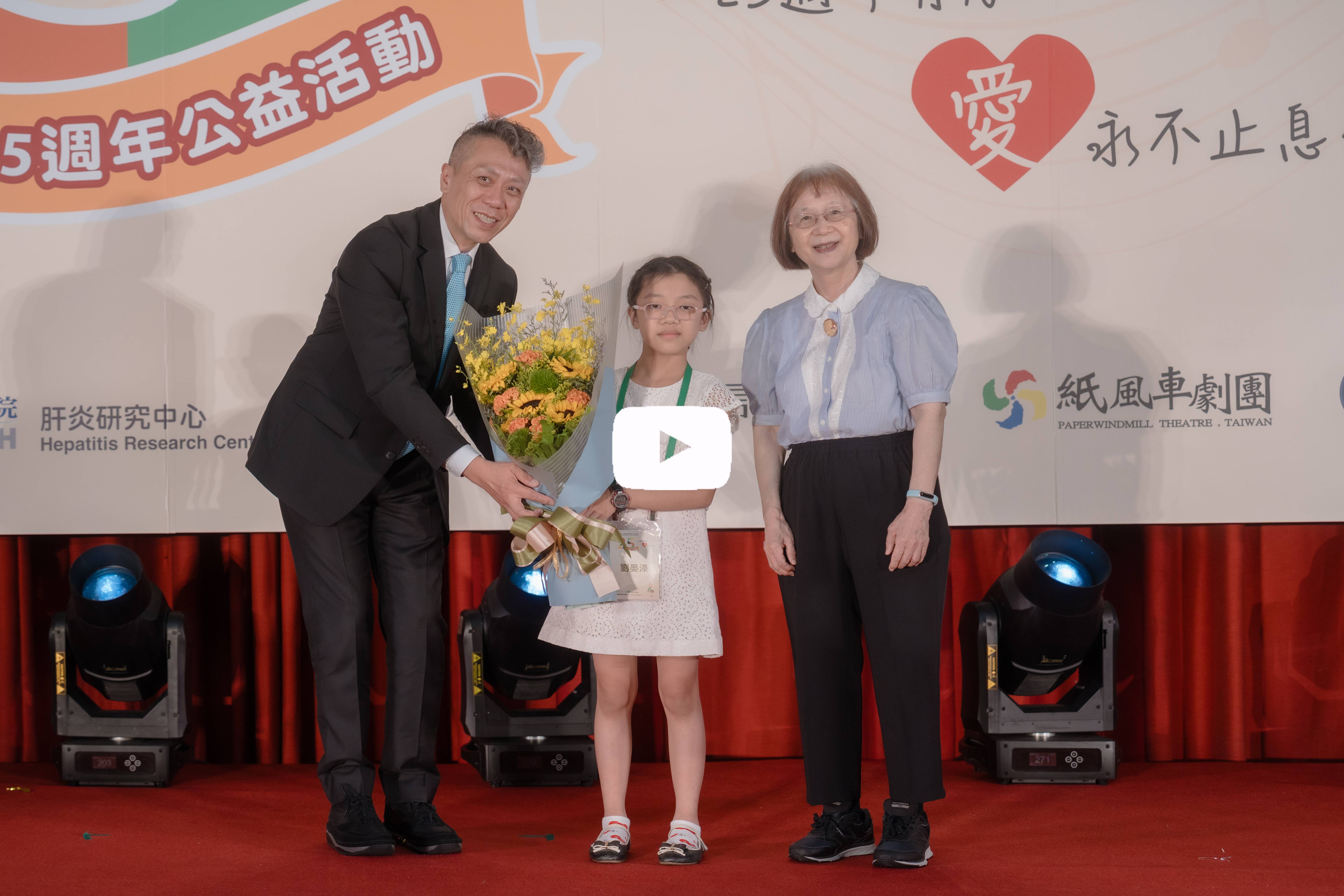 勇源基金會代表 :陳致遠 先生 致詞、基金會病童-毓雰 代表獻花