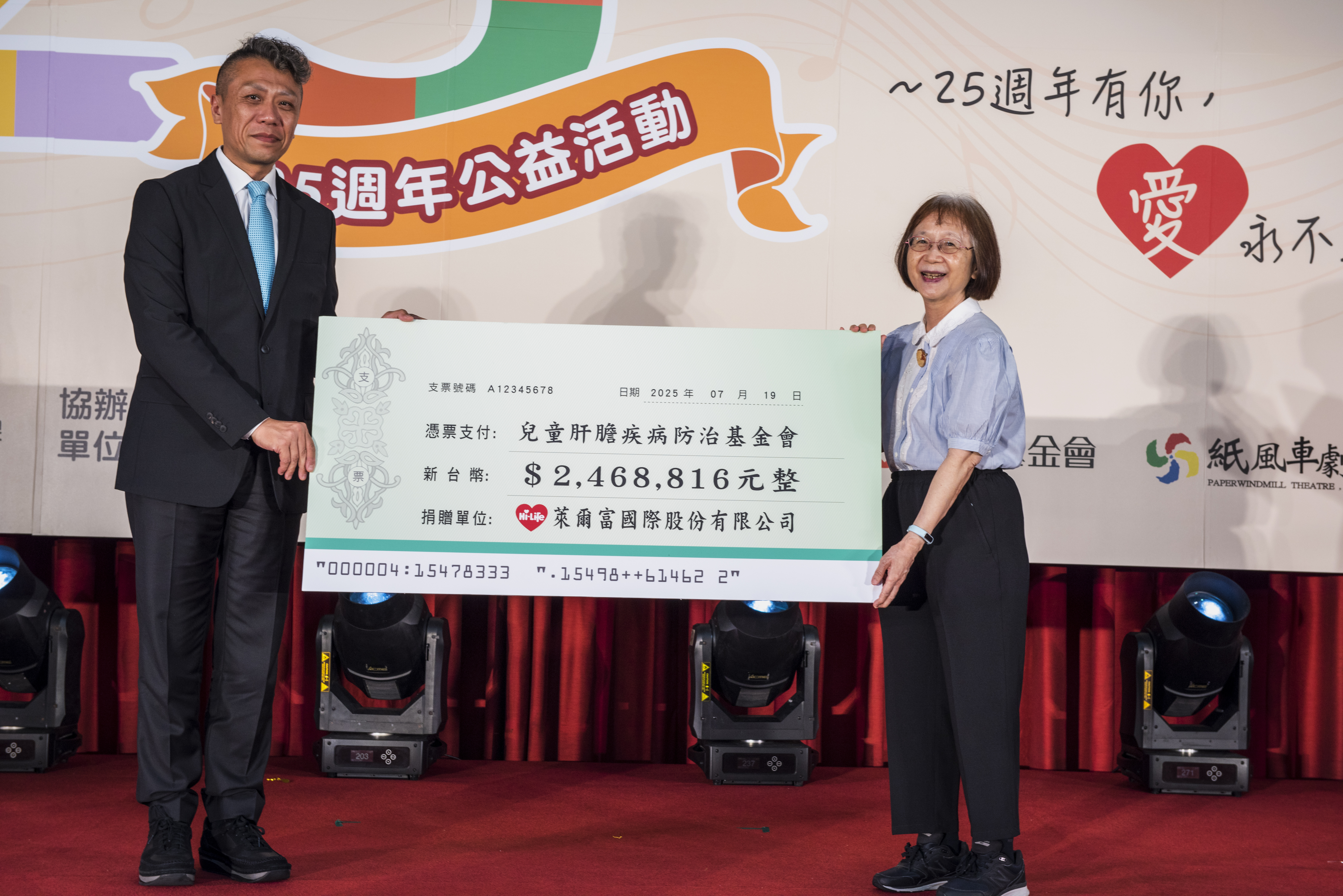 感謝萊爾富公司配合公益勸募捐助2,468,816元幫助全國肝苦兒重獲健康!