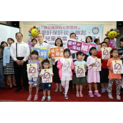 兒童肝膽疾病防治基金下午在市長官邸沙龍文藝中心舉辦記者會,疾病管制署副署長莊人祥(後右六)、兒童肝膽疾病防治基金會董事長張美惠(後左六)等人,與肝膽疾病病友合影,宣導「愛肝保肝從小...「愛肝保肝從小做起」記者會 -